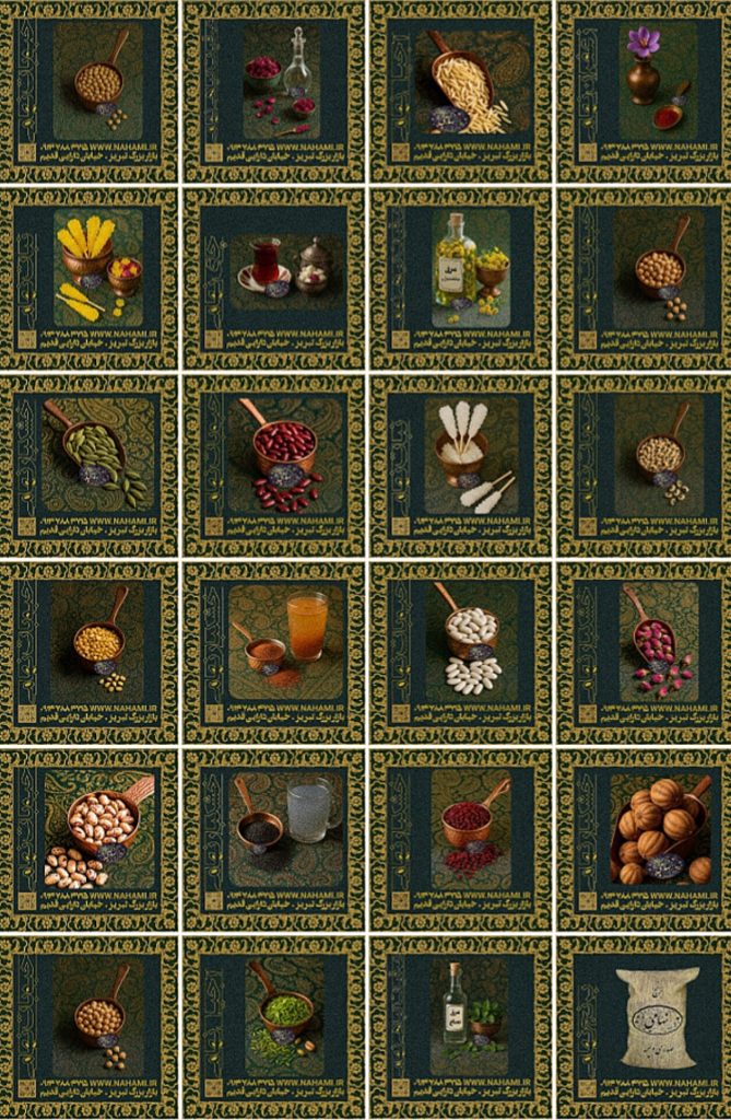 برنج . زعفران . چای . آجیل . خشکبار . ادویه . حبوبات . غلات . عرقیات گیاهی . نبات . دمنوش . سوغات